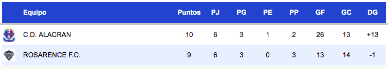 TABLA DE POSICION LOCAL LIGA MAYOR DE FUTBOL AFICIONADO PRIMERA CATEGORIA